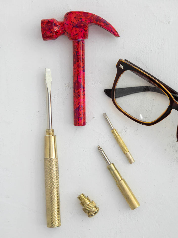 So many things in your home require using a hammer or screwdriver. Empower yourself to accomplish these tasks, BUT there’s no reason you have to use ugly, old cumbersome tools. We’ve designed the cutest little hammer and screwdriver set you’ve ever seen! Everything you need is contained inside the hammer!! Just unscrew the base of the hammer and you have the bottom of your screwdriver. Choose from three different screwdriver heads and there you go! Hang a picture, fix your glasses, or unscrew those pesky toy battery cases. Hammer that loose nail back in the deck or easily assemble a Natural Life side table. You can do this! This makes a wonderful gift for someone moving into a new home.
