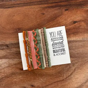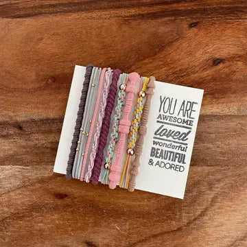 These Boho style hair ties are unique, decorative and oh so cute! Whether using your hair ties to hold up that luscious ponytail or stacking them on your wrist to add some outfit pizzazz, you can't go wrong. Hair ties come on a card complete with words of encouragement that will surely put a smile on her face!