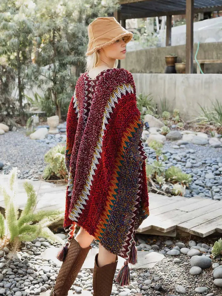 Feast your eyes on this lovely Western Colorful Crochet Patterned Ruana. Crafted from 100% Acrylic, it adds a vibrant touch to your wardrobe with its playful crochet pattern. Measuring at 42" x 30", this one-size-fits-most ruana is not just a fashion statement but a cozy companion. Whether you're pairing it with jeans for a casual outing or draping it over a dress for a more polished look, this ruana suits all occasions.