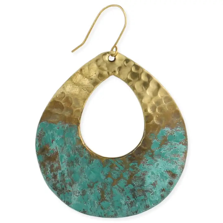 Get a rustic and stylish look with our Distressed Gold Hammered Patina Teardrop Earrings. Made with a unique hammered patina technique, these earrings add a subtle touch of texture to your outfit. The distressed gold color adds a pop of warmth to any look, making these earrings a versatile and trendy accessory.