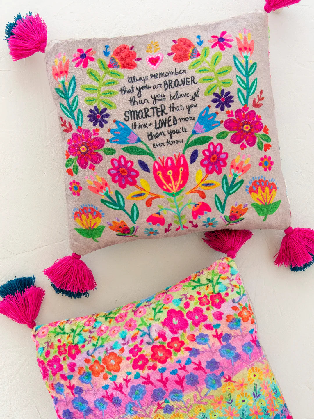 This Double-Sided Cozy Throw Pillow features a sweet sentiment and double-stacked tassels on each corner. Made with the same comfy material as our cozy blankets, it offers both style and comfort. The included insert adds extra cushioning, making it perfect for lounging or decorating your home.