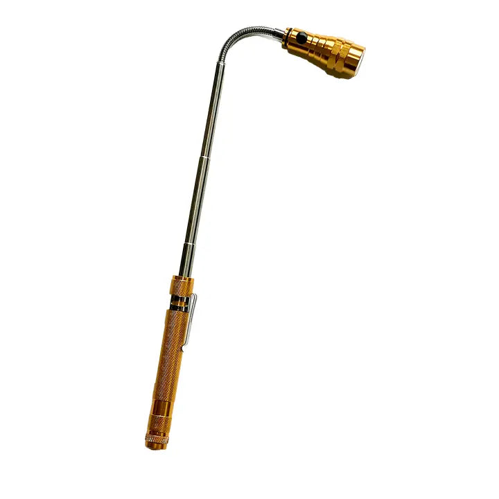 Get light where you need it every time with this telescoping, posable gooseneck flashlight. Great for those hard to see corners, underneath shadows, and other hard to see areas. A perfect gift for any mechanic or home DIY projects.