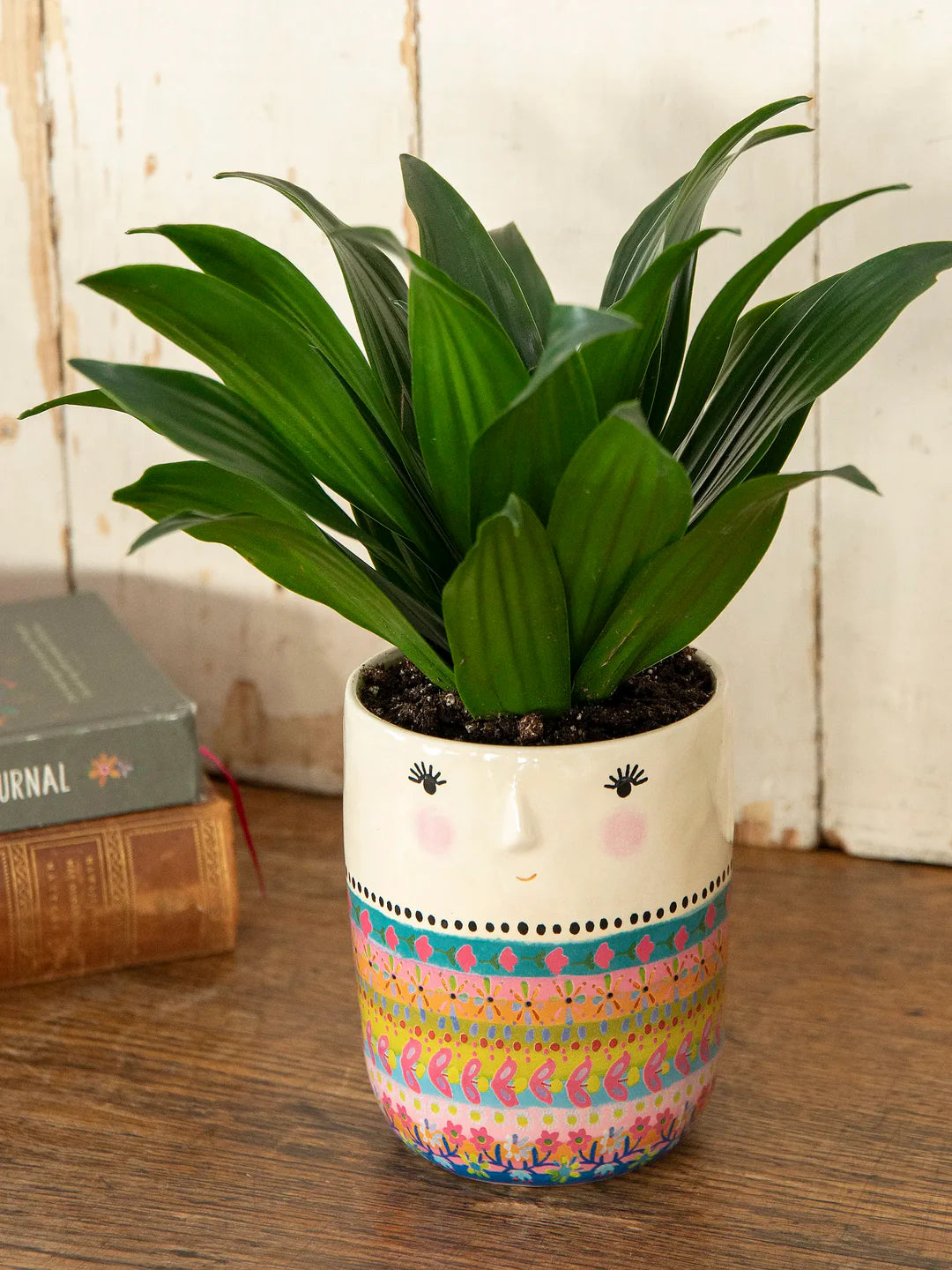 Introducing the Folk Friend Planter- a unique and charming way to display your plants. Made in the likeness of a folk lady, this planter adds a touch of whimsy to any space. Crafted with expert precision and attention to detail. Perfect for those who appreciate both nature and art.