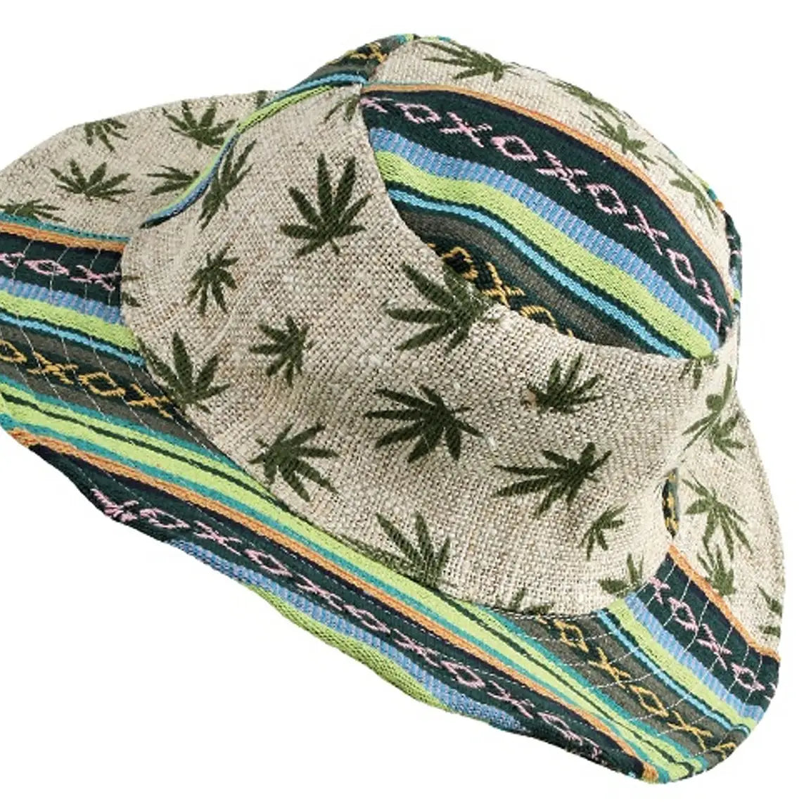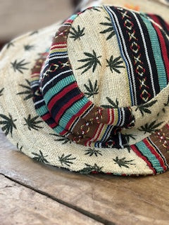 Crafted from sustainable hemp, the Gheri Hemp Hat features a distinctive pot leaf design, combining eco-friendly materials with bold style. Its breathable fabric ensures comfort in warm weather, while the unique pattern adds a statement touch to any outfit. Ideal for those seeking both sustainability and standout fashion in their headwear.