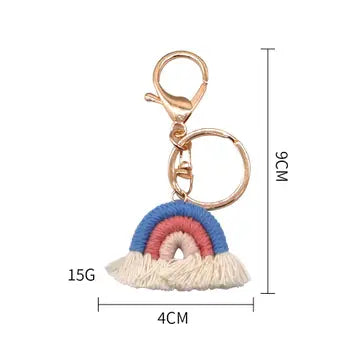 Add a pop of color and charm to your keys or bag with our Handmade Crochet Rainbow Keychain. Expertly crafted with a vibrant rainbow design, this compact accessory is both practical and eye-catching. At 9 cm in length and 4 cm in width, it's the perfect size to brighten up your daily essentials.