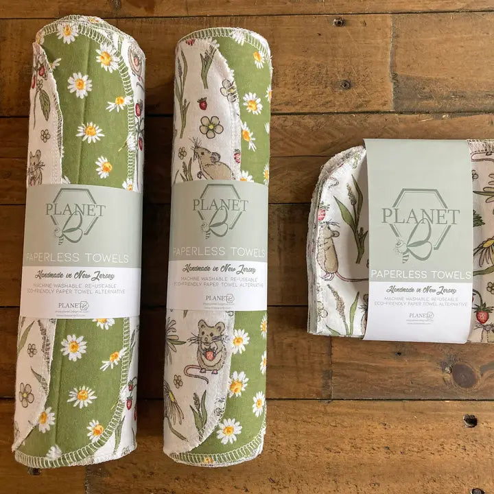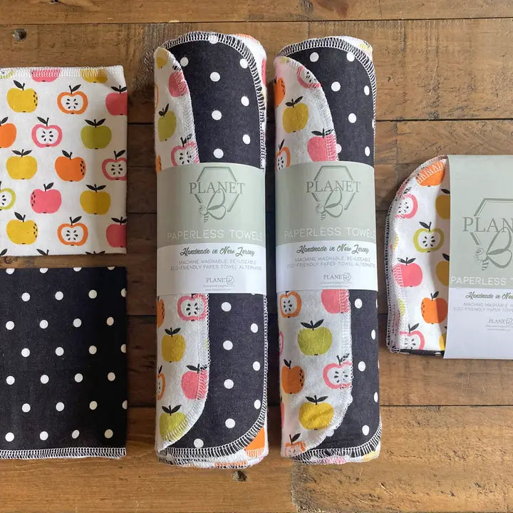 Paper towels are a thing of the past! Our cotton flannel paperless towels are a fantastic waste free alternative to traditional paper towels, and easily cling together to roll onto our re-used kraft paper tubes. Towels are single ply 100% cotton flannel and become more absorbent after the first few washes. Machine wash hot with like colors. Tumble dry low. After washing, either stack them up or re-roll one at a time.