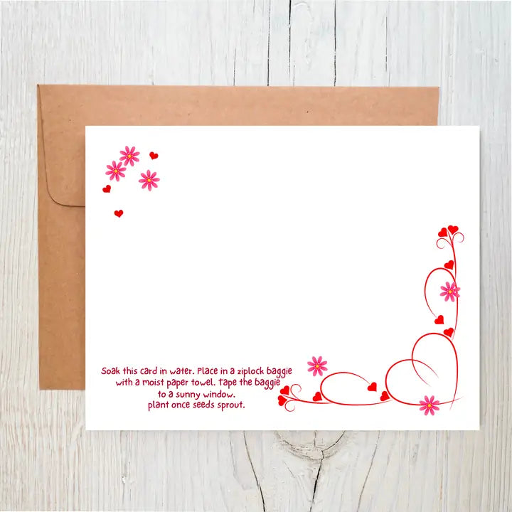 Eco-friendly Plantable Love Cards feature a beautiful hearts and flower design, and come in a set of 6 with envelopes. Made of 100% recycled plantable paper, these 300 gsm cards help save trees and feed bees with wildflower seeds. Show your love for the planet while expressing your love to others.
