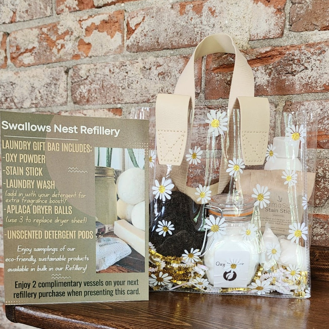 Start a new clean laundry routine with these eco friendly products. A jar of oxygen powder, 3x dryer balls, detergent pods, sample size of our salt and sage detergent and a stain sticks for all those touch messes.
