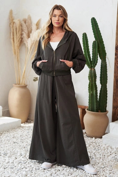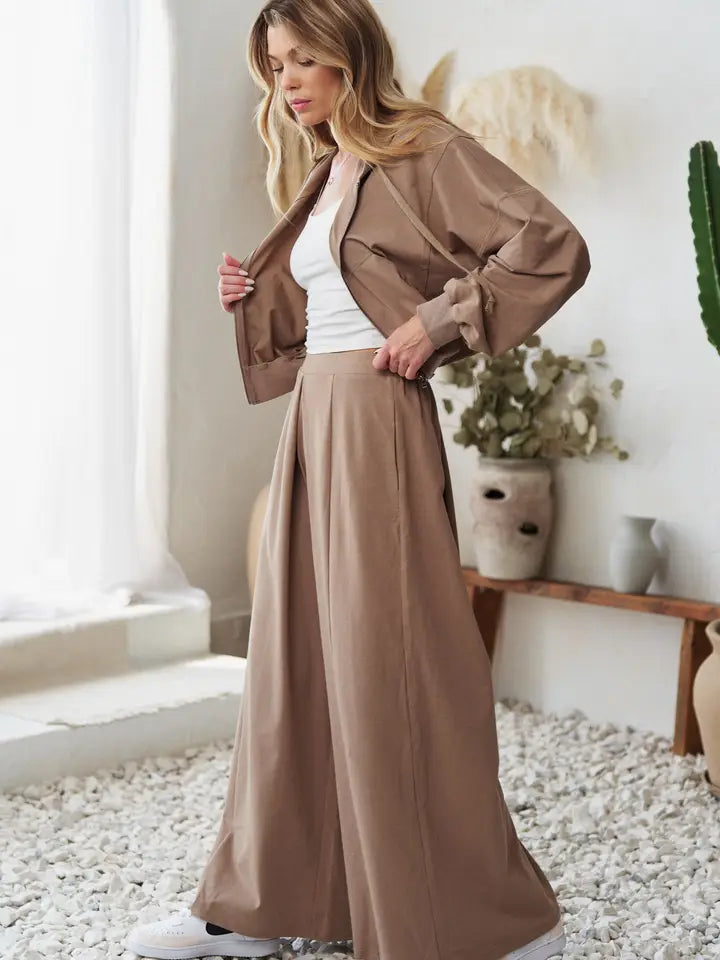 Solid Pleated wide-leg pants -High-waisted elastic band -Pleat detail in the front -Wide leg